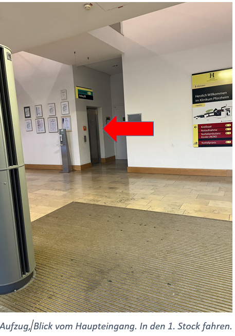 Diesen erreichen Sie über den Fahrstuhl (siehe Bild, Ausstieg im 1. OG)