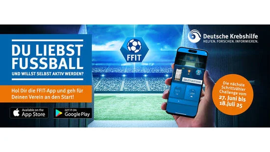 Mit der neuen App „Fußballfans im Training“ (FFIT) können Fußballfans bundesweit ab sofort etwas für ihre Gesundheit tun und sich dabei in der „FFIT-Liga“ in verschiedenen Challenges für ihren Lieblingsverein „ins Zeug legen“ – zum Beispiel in der kommenden „Schrittzähler-Challenge“ vom 27. Juni bis 18. Juli 2025. 25 Vereine der Bundesliga, 2. Bundesliga und dritten Liga sind in der „FFIT-Liga“ vertreten. Die kostenlose FFIT-App steht im App Store und Google Play Store zum Download bereit.